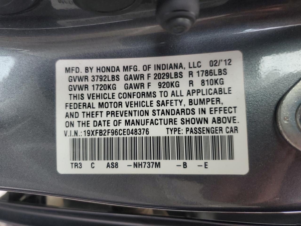 2012 HONDA CIVIC - 19XFB2F96CE048376, цвет - Серый, 1.8, Бензин, из США
