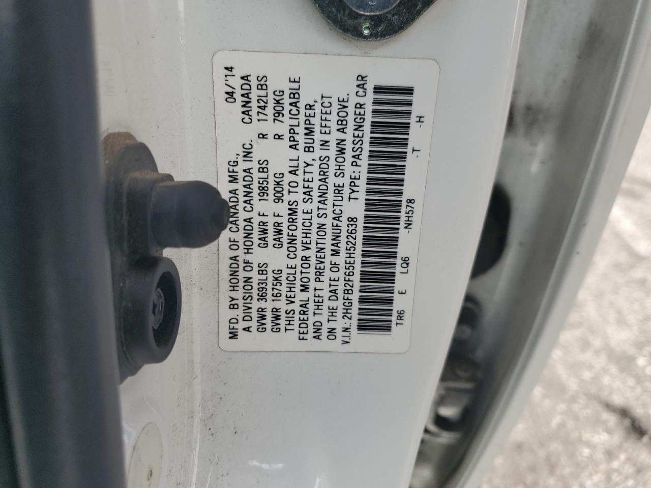 2014 HONDA CIVIC - 2HGFB2F65EH522638, цвет - Белый, 1.8, Бензин, из США