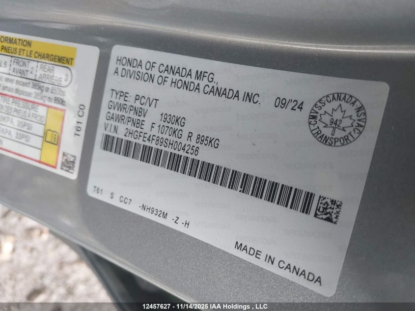 2025 HONDA CIVIC - 2HGFE4F89SH004256, цвет - Серый, , Бензин, Передний привод из США