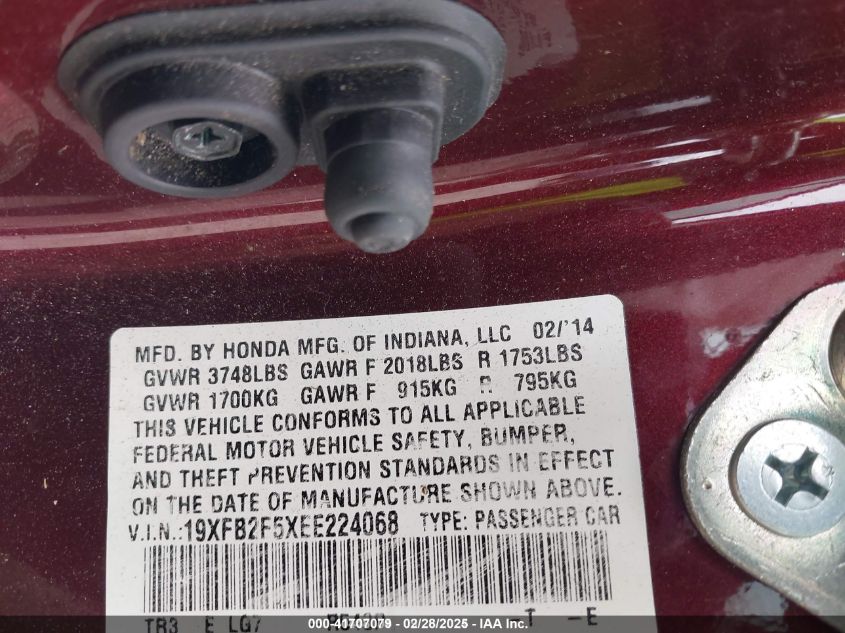 2014 HONDA CIVIC - 19XFB2F5XEE224068, цвет - Бургундия, 1.8, Бензин, Передний привод из США