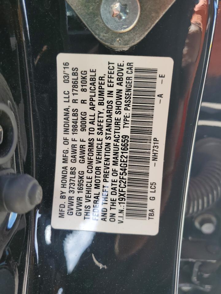 2016 HONDA CIVIC - 19XFC2F54GE216659, цвет - Черный, 2.0, Бензин, из США