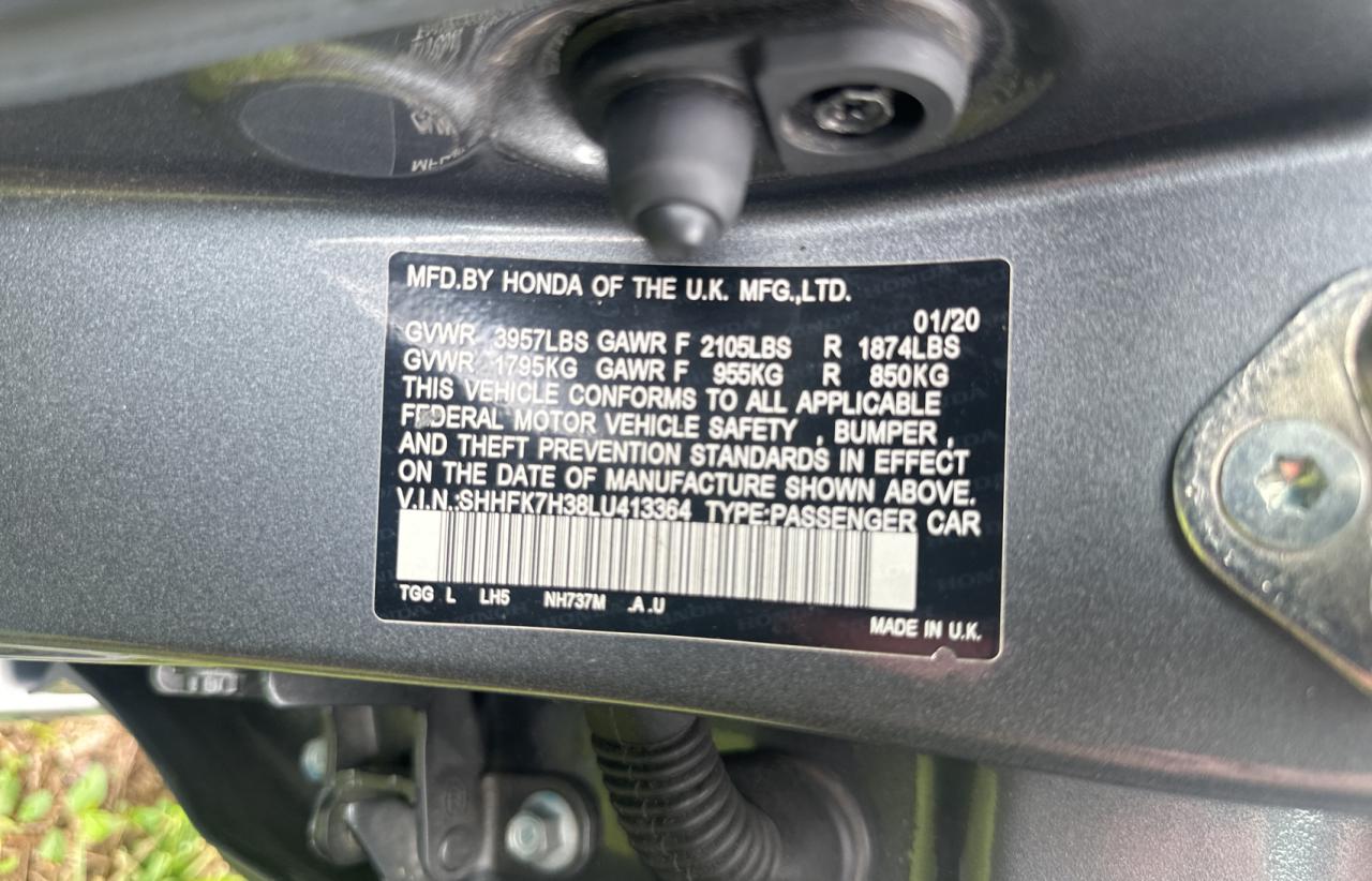 2020 HONDA CIVIC - SHHFK7H38LU413364, цвет - Серый, 1.5, Бензин, из США