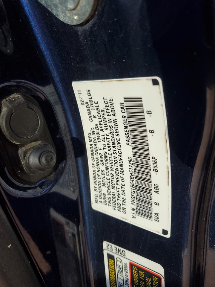 2011 HONDA CIVIC - 2HGFG1B64BH517296, цвет - Синий, 1.8, Бензин, из США