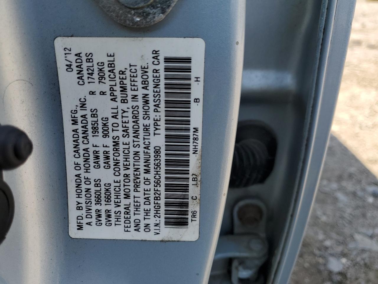 Цвет СинийЦилиндры 4VIN 2HGFB2F56CH563980Состояние ЗаводитсяПовреждения По всему авто