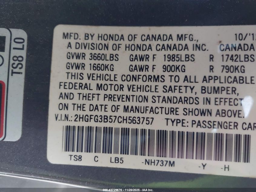 Цвет СерыйЦилиндры 4Привод Передний приводVIN 2HGFG3B57CH563757Состояние Заводится и едет (проверено)Повреждения Передняя или задняя