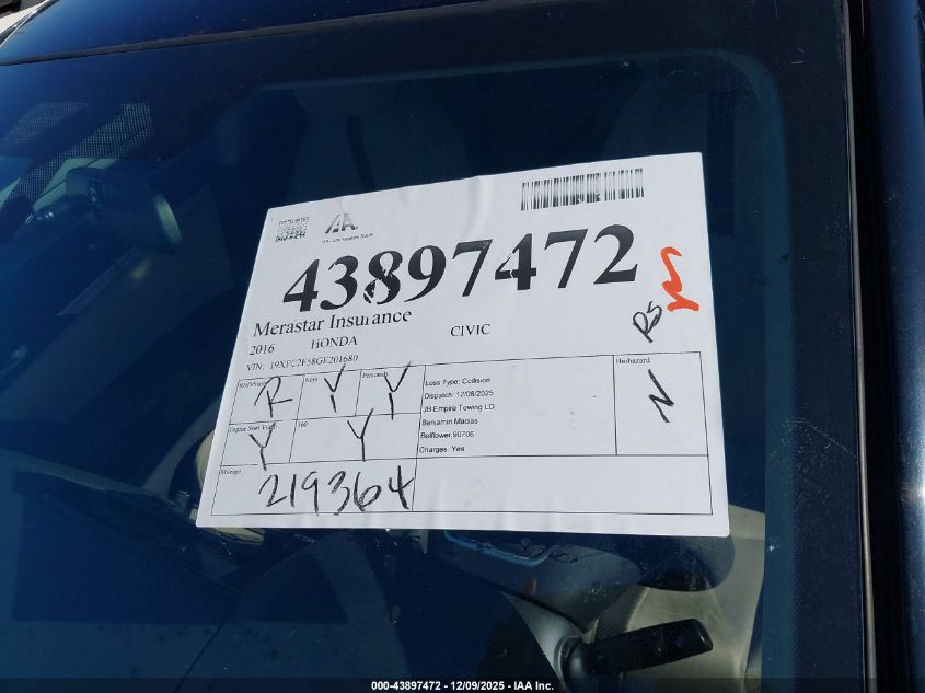2016 HONDA CIVIC EX