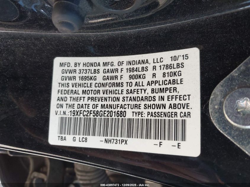 2016 HONDA CIVIC EXL
