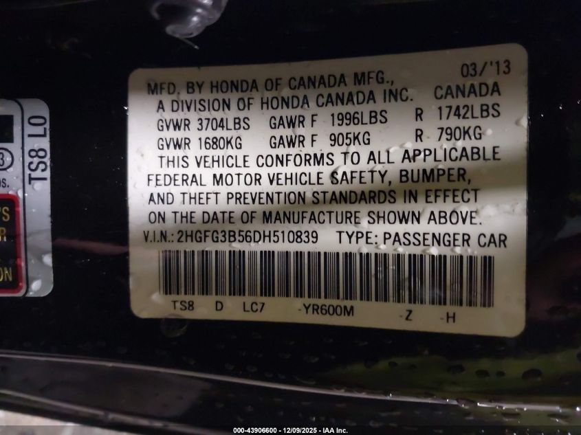 Цвет КоричневийЦилиндры 4Привод Передний приводVIN 2HGFG3B56DH510839Состояние Заводится и едет (проверено)Повреждения По всему автоДата аукциона 2025-12-18