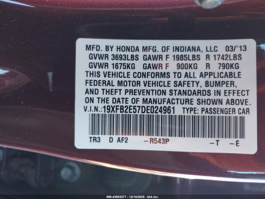 Цвет БургундияЦилиндры 4Привод Передний приводVIN 19XFB2E57DE024961Состояние Заводится и едет (проверено)Повреждения Передняя правая