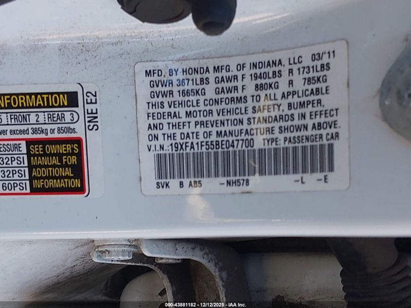 2011 HONDA CIVIC LX