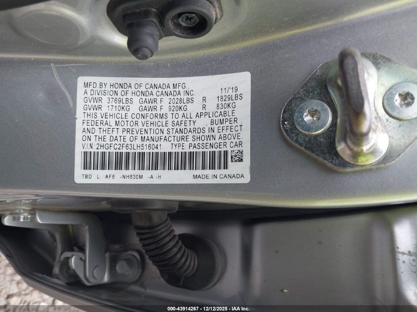 2020 HONDA CIVIC - 2HGFC2F63LH516041, цвет - Серебряный, 2.0, Бензин, Передний привод из США