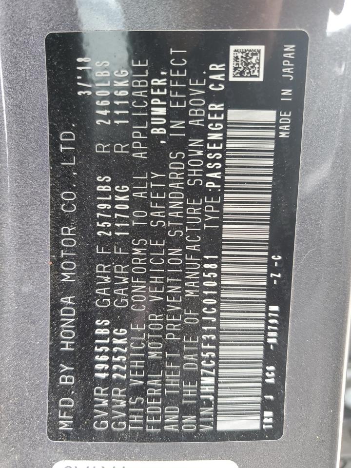 2018 HONDA CLARITY - JHMZC5F31JC010581, цвет - Серый, 1.5, Гибрид, из США