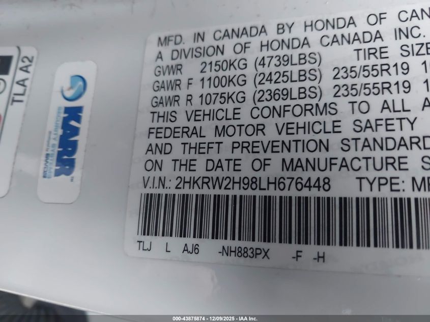 2020 HONDA CR-V - 2HKRW2H98LH676448, цвет - Белый, 1.5, Бензин, Полный привод из США