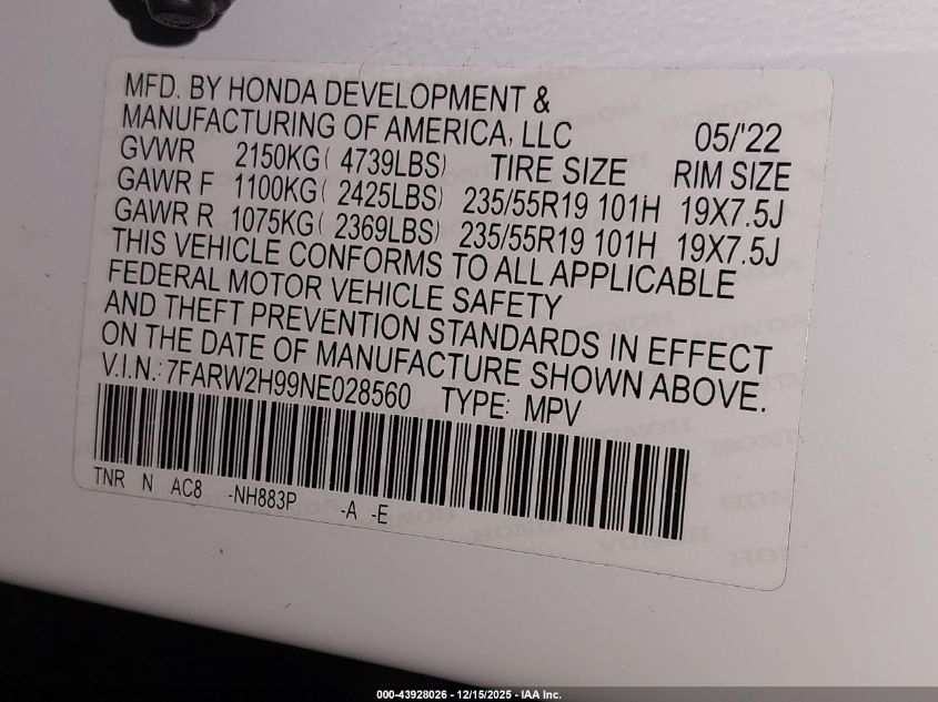 2022 HONDA CR-V - 7FARW2H99NE028560, цвет - Белый, 1.5, Бензин, Полный привод из США
