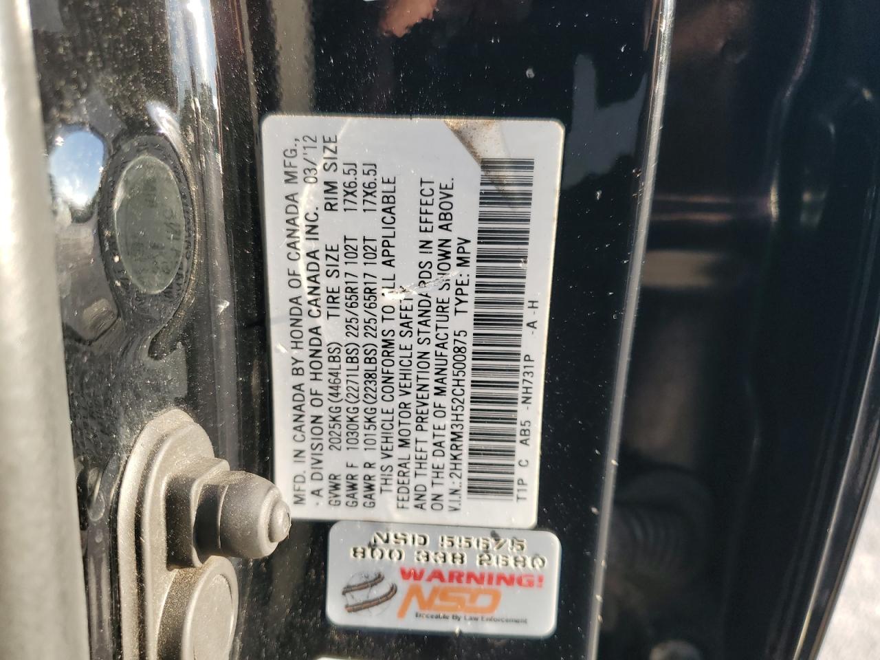 Цвет ЧерныйЦилиндры 4VIN 2HKRM3H52CH500875Состояние НеизвестноПовреждения Передняя или задняя