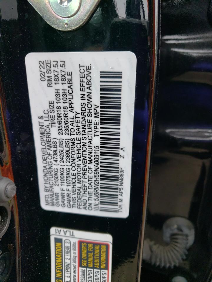2022 HONDA CR-V - 5J6RW2H59NA009115, цвет - Черный, 1.5, Бензин, Полный привод из США