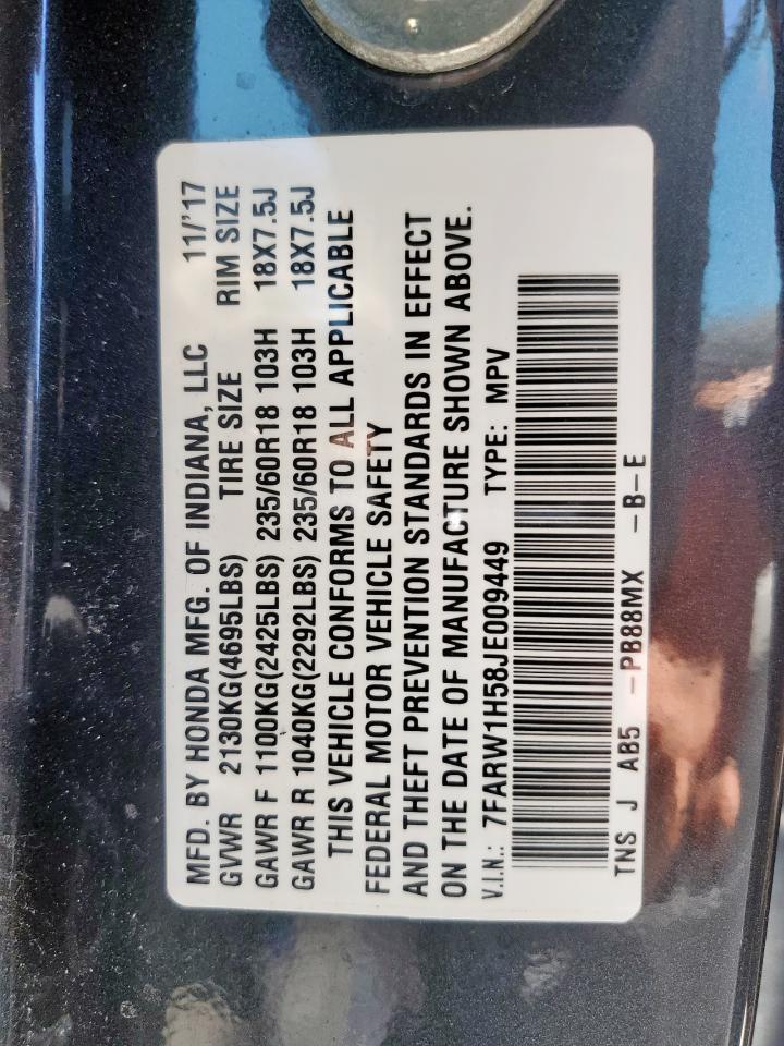 2018 HONDA CR-V - 7FARW1H58JE009449, цвет - Черный, 1.5, Бензин, из США