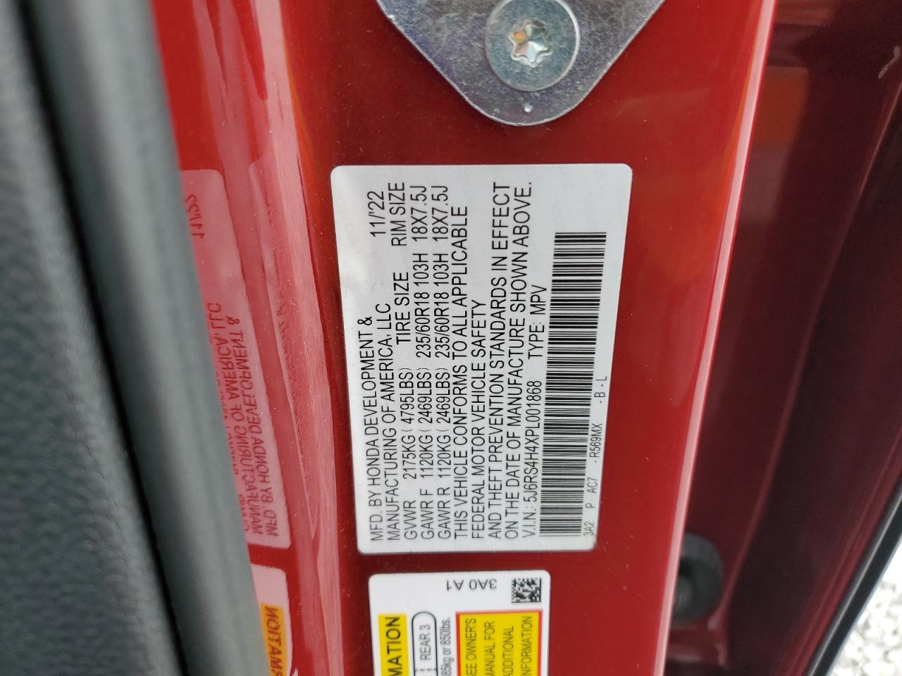 2023 HONDA CR-V - 5J6RS4H4XPL001868, цвет - Красный, 1.5, Бензин, Полный привод из США