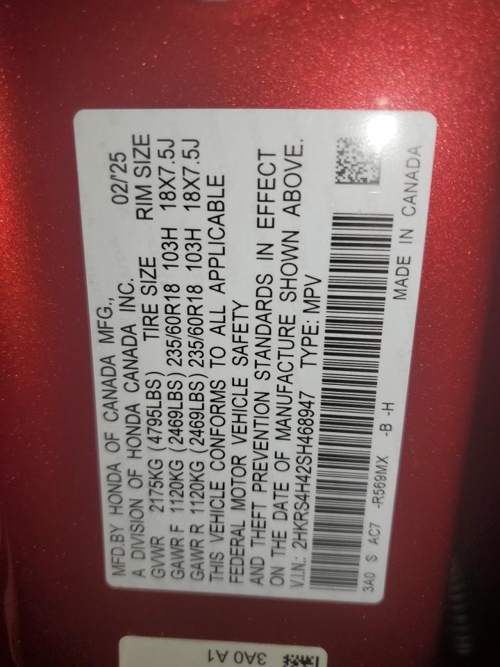 2025 HONDA CR-V - 2HKRS4H42SH468947, цвет - Бургундия, 1.5, Бензин, Полный привод из США