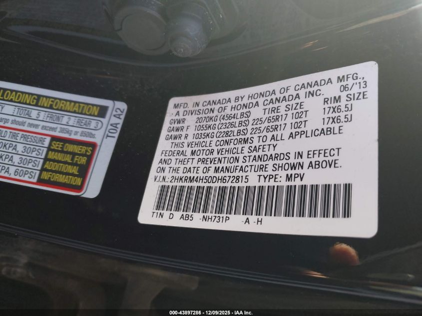 2013 HONDA CR-V - 2HKRM4H50DH672815, цвет - Черный, 2.4, Бензин, Полный привод из США