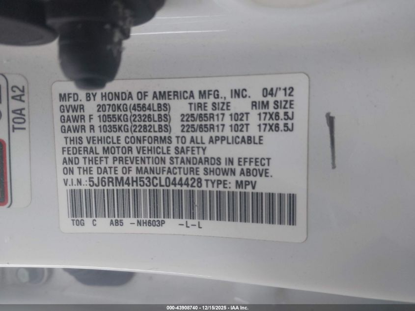 Цвет БелыйЦилиндры 4Привод Полный приводVIN 5J6RM4H53CL044428Состояние НеизвестноПовреждения Неизвестно