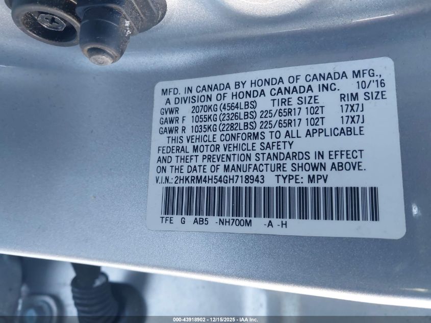 2016 HONDA CR-V - 2HKRM4H54GH718943, цвет - Серебряный, 2.4, Бензин, Полный привод из США