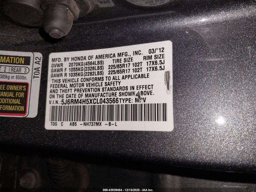 2012 HONDA CR-V - 5J6RM4H5XCL043566, цвет - , 2.4, Бензин, Полный привод из США