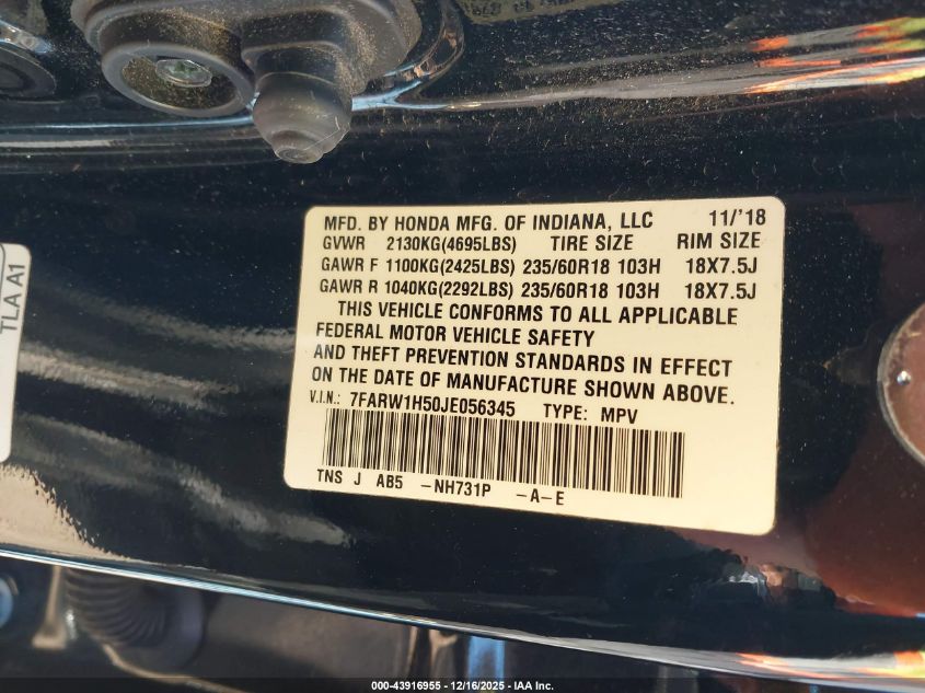 2018 HONDA CR-V - 7FARW1H50JE056345, цвет - , 1.5, Бензин, Передний привод из США