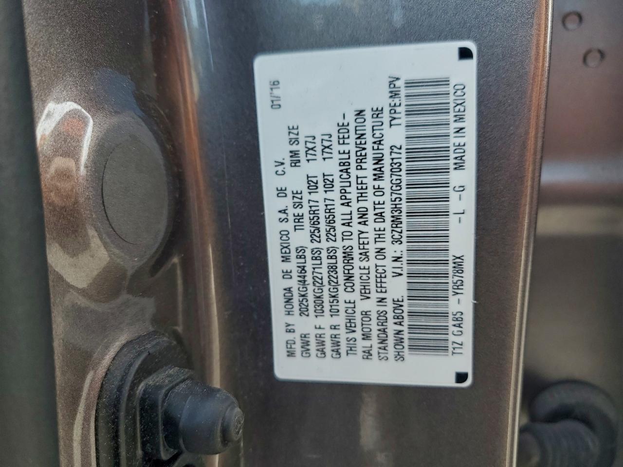 2016 HONDA CR-V - 3CZRM3H57GG703172, цвет - Серый, 2.4, Бензин, из США
