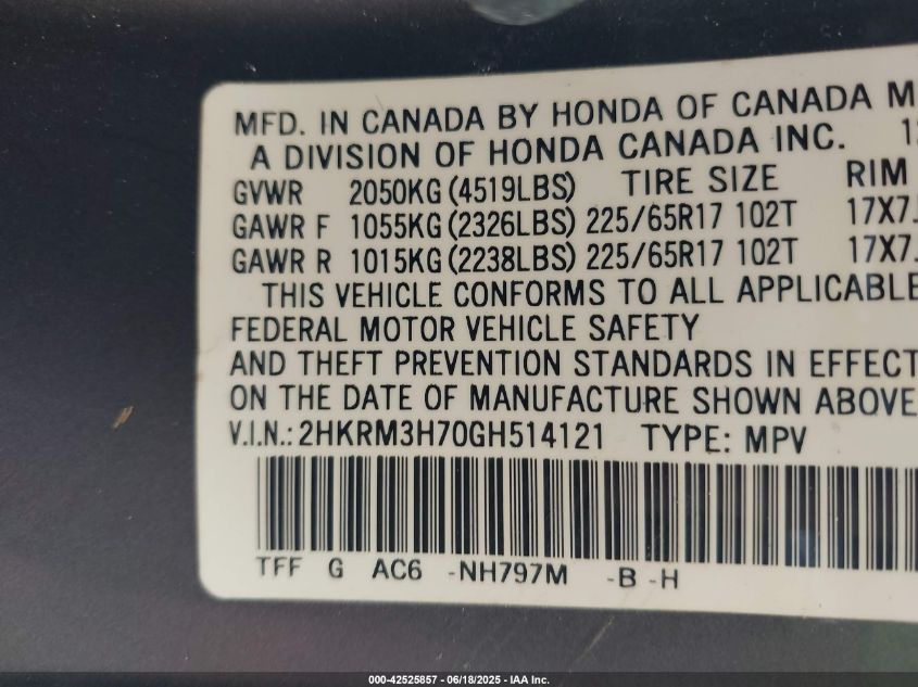 2016 HONDA CR-V - 2HKRM3H70GH514121, цвет - Серый, 2.4, Бензин, Передний привод из США