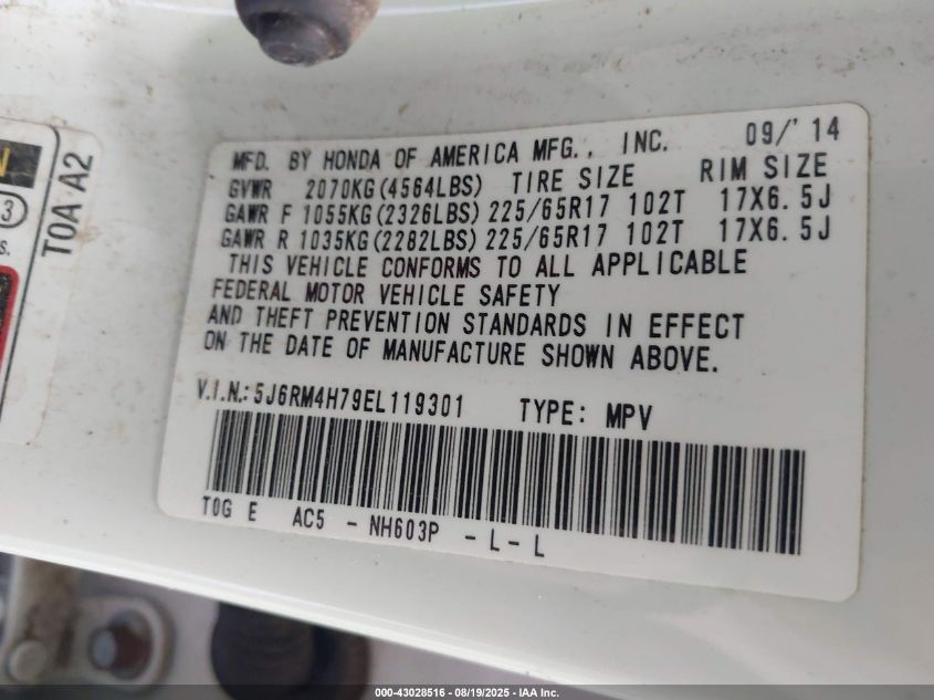 2014 HONDA CR-V - 5J6RM4H79EL119301, цвет - Белый, 2.4, Бензин, Полный привод из США