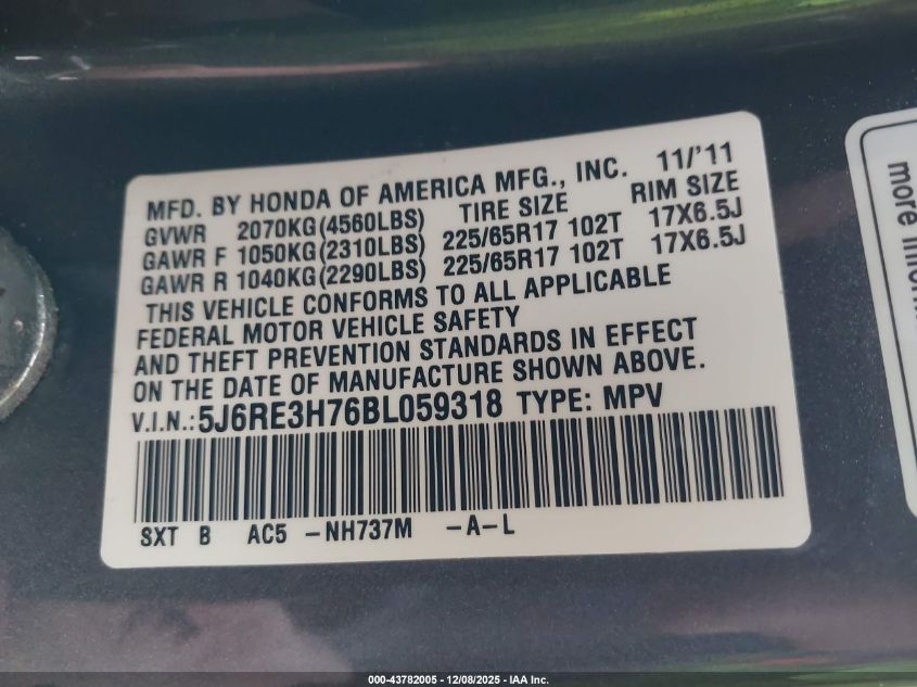 Цвет СерыйЦилиндры 4Привод Передний приводVIN 5J6RE3H76BL059318Состояние Заводится и едет (проверено)Повреждения По бокам