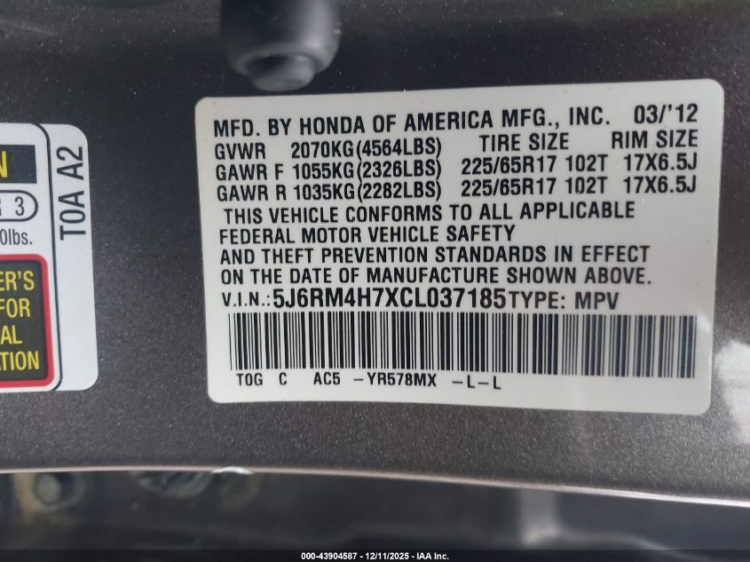 Цвет СерыйЦилиндры 4Привод Полный приводVIN 5J6RM4H7XCL037185Состояние Заводится и едет (проверено)Повреждения Задняя левая