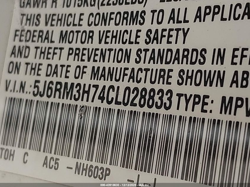 Цвет БелыйЦилиндры 4Привод Передний приводVIN 5J6RM3H74CL028833Состояние Заводится и едет (проверено)Повреждения Передняя или задняя