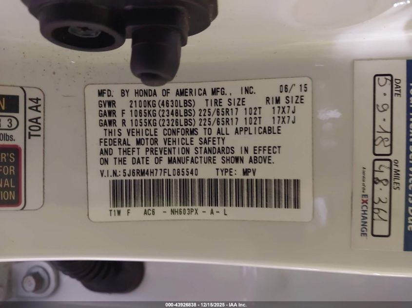 Цвет БелыйЦилиндры 4Привод Полный приводVIN 5J6RM4H77FL085540Состояние Заводится и едет (проверено)Повреждения Незначительные