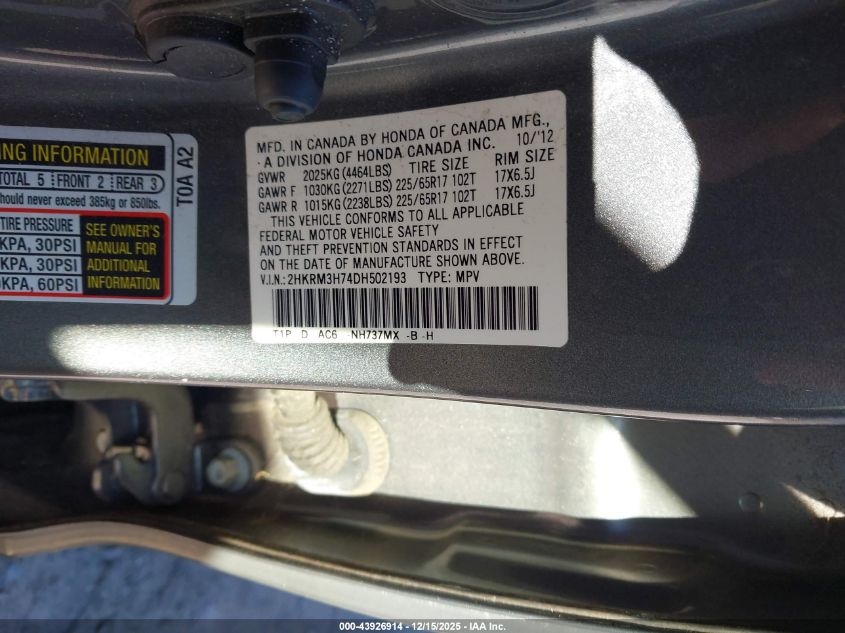 2013 HONDA CR-V - 2HKRM3H74DH502193, цвет - , 2.4, Бензин, Передний привод из США
