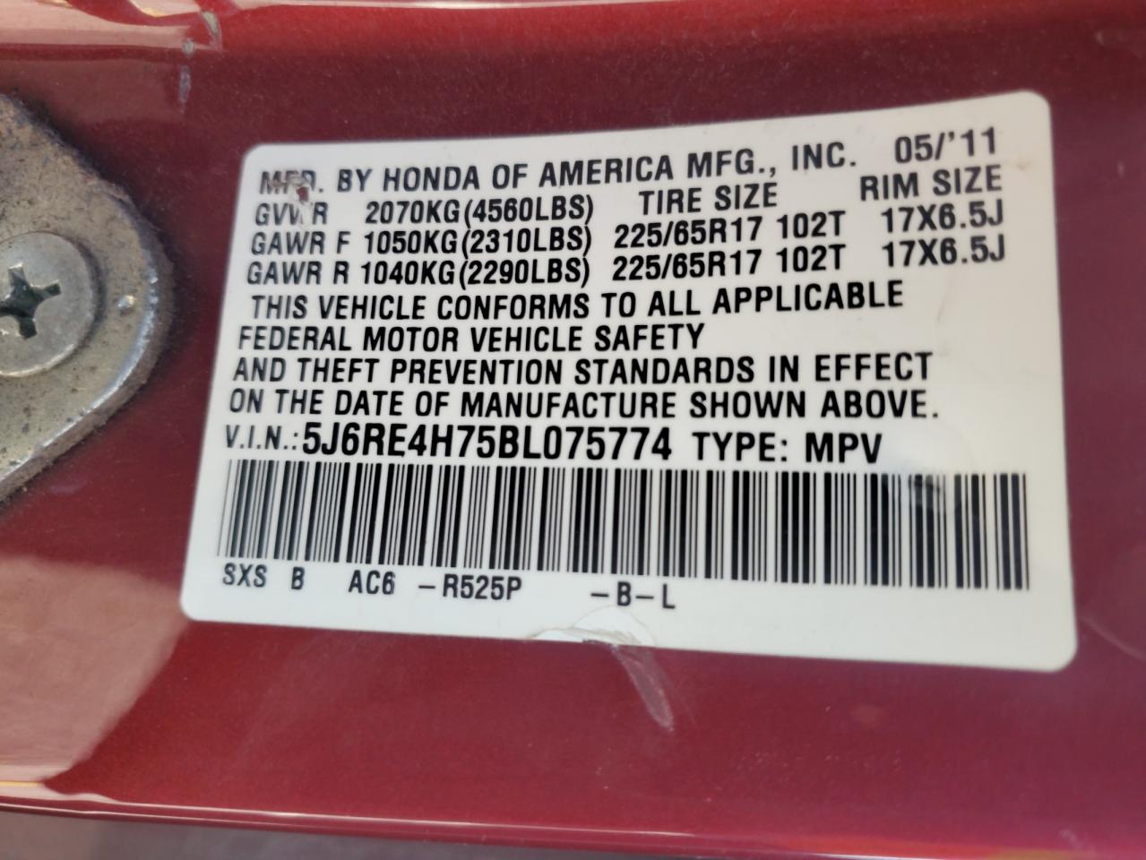 2011 HONDA CR-V - 5J6RE4H75BL075774, цвет - Бордовый, 2.4, Бензин, Полный привод из США