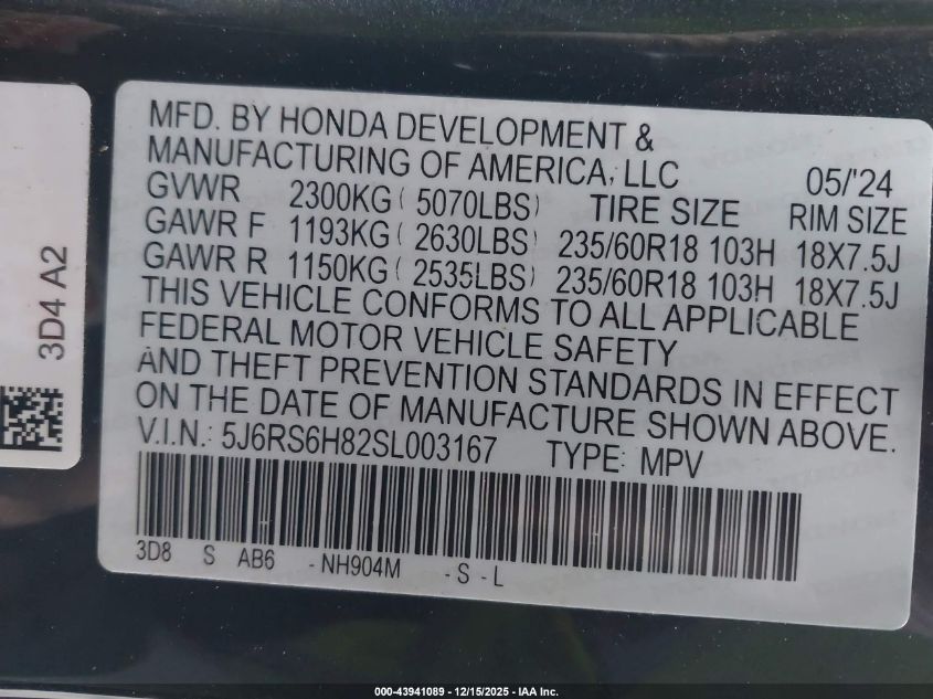 2025 HONDA CR-V HYBRID - 5J6RS6H82SL003167, цвет - Серый, 2.0, Гибрид, Полный привод из США