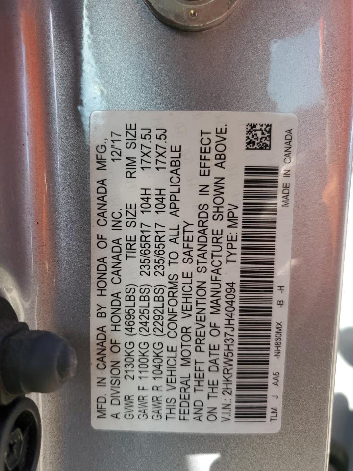 2018 HONDA CR-V - 2HKRW5H37JH404094, цвет - Серебряный, 2.4, Бензин, из США