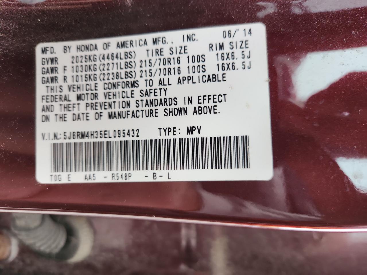 2014 HONDA CR-V - 5J6RM4H35EL095432, цвет - Бургундия, 2.4, Бензин, Полный привод из США