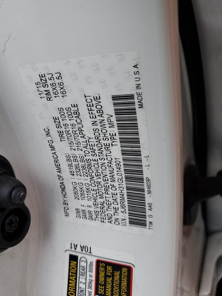 2016 HONDA CR-V - 5J6RM4H31GL014901, цвет - Белый, 2.4, Бензин, Полный привод из США