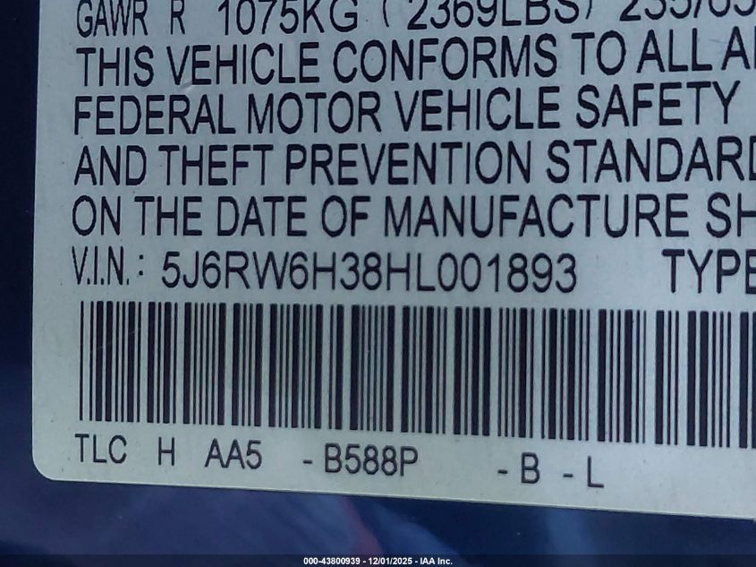 Цвет СинийЦилиндры 4Привод Полный приводVIN 5J6RW6H38HL001893Состояние СтационарноПовреждения Передняя или задняя