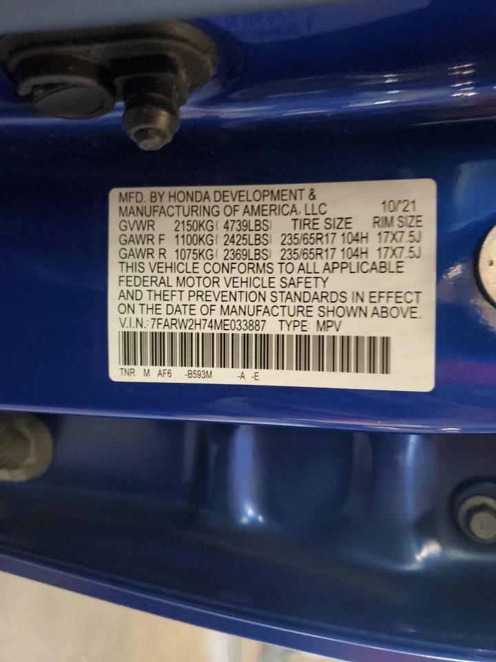 2021 HONDA CR-V - 7FARW2H74ME033887, цвет - Синий, 1.5, Бензин, Полный привод из США