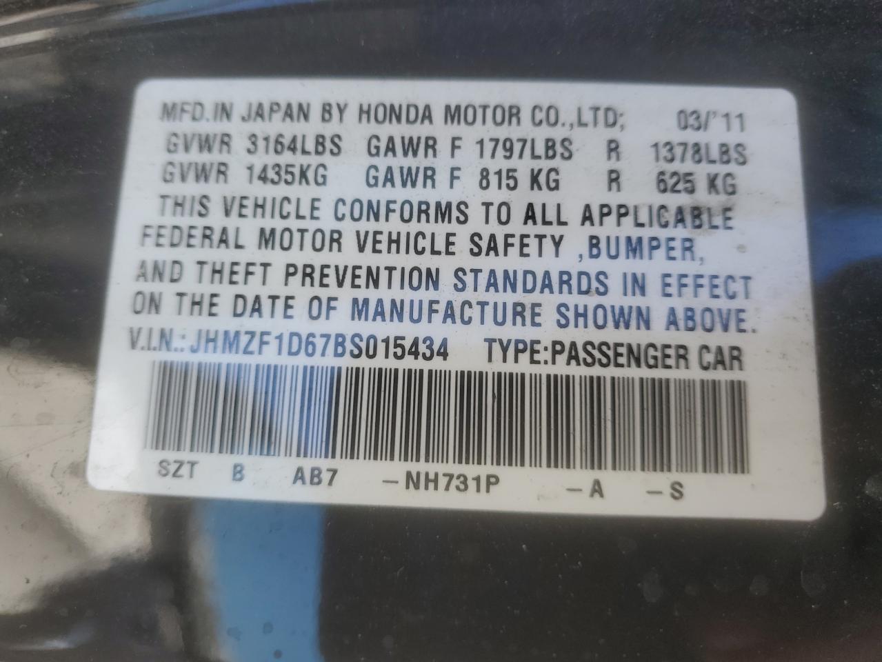 2011 HONDA CR-Z - JHMZF1D67BS015434, цвет - Черный, 1.5, Гибрид, из США