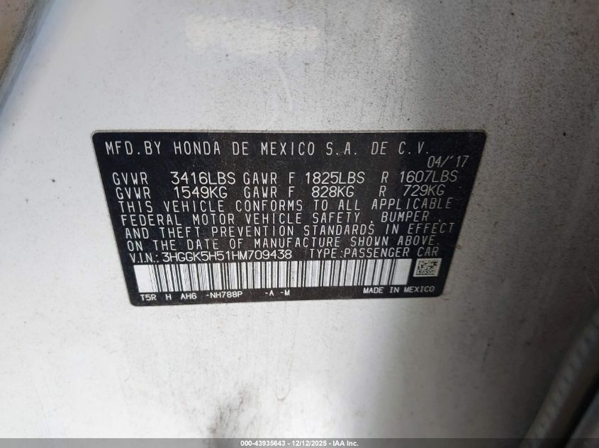 2017 HONDA FIT - 3HGGK5H51HM709438, цвет - Белый, 1.5, Бензин, Передний привод из США