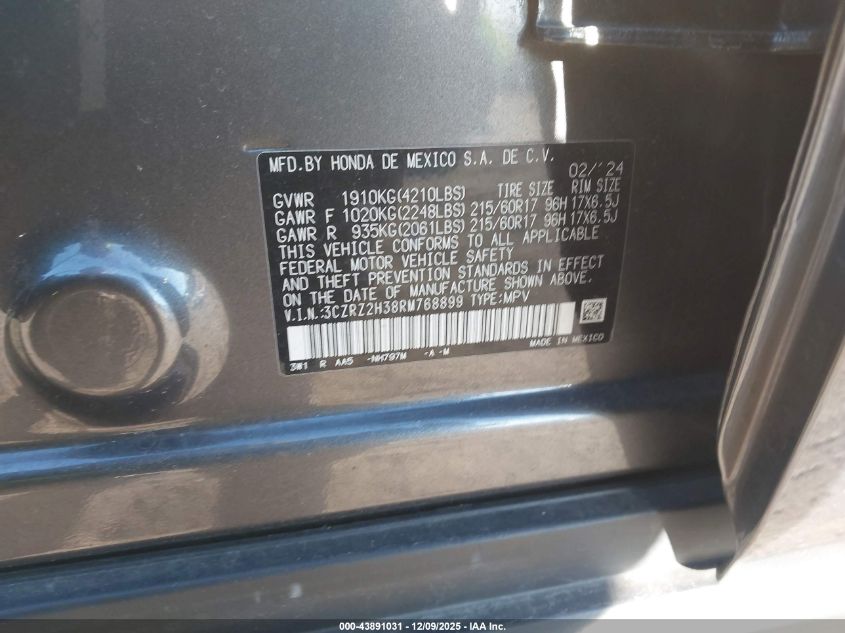 2024 HONDA HR-V - 3CZRZ2H38RM768899, цвет - Серый, 2.0, Бензин, Полный привод из США