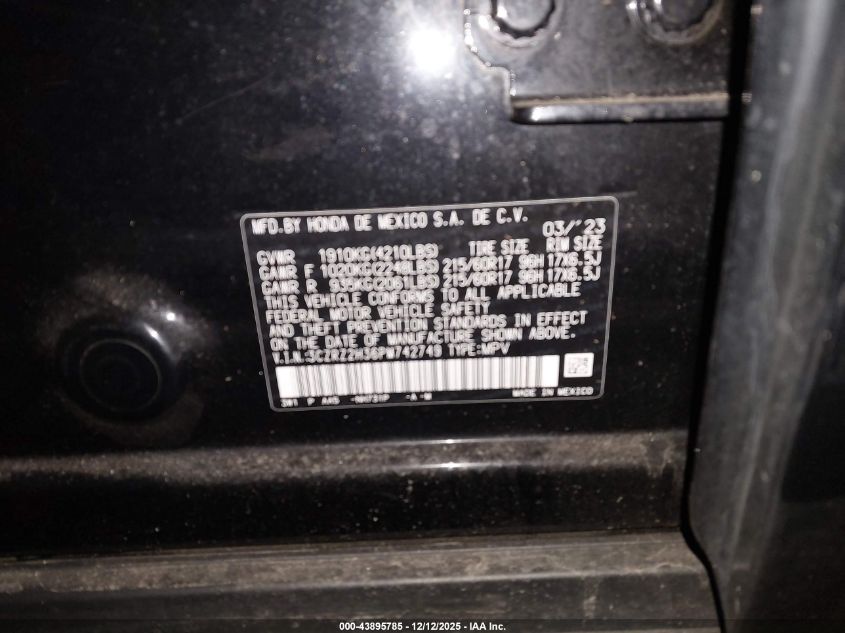 2023 HONDA HR-V - 3CZRZ2H36PM742749, цвет - Черный, 2.0, Бензин, Полный привод из США