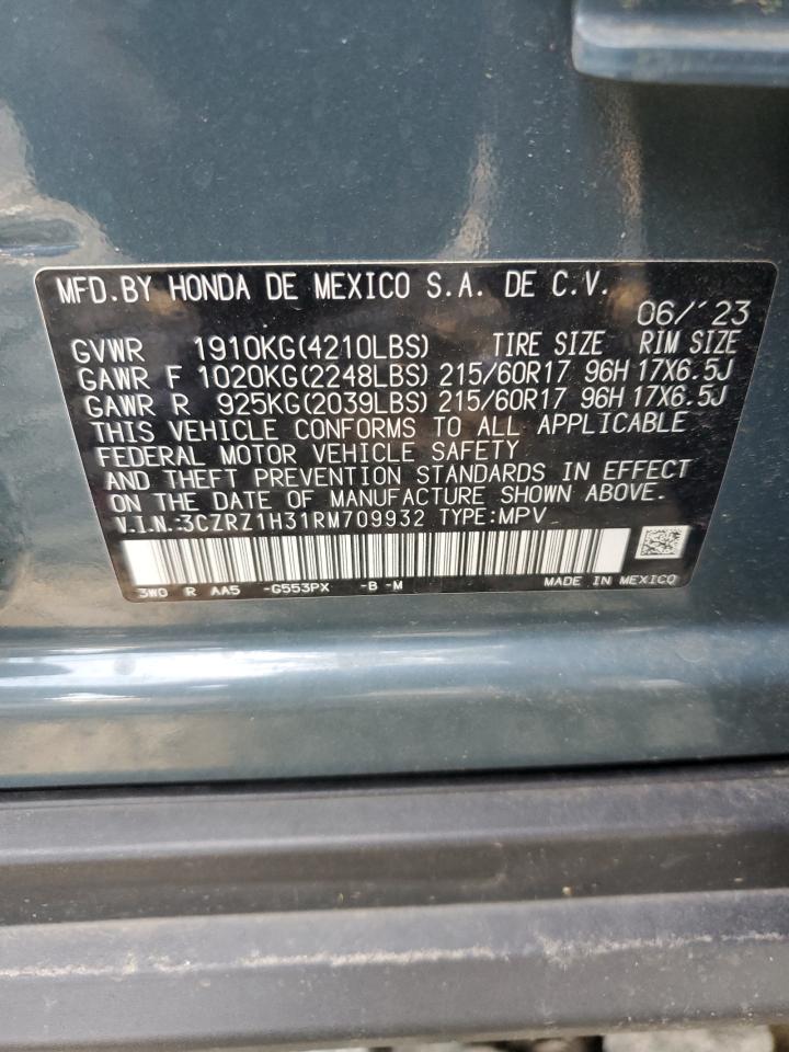2024 HONDA HR-V - 3CZRZ1H31RM709932, цвет - Бирюзовий, 2.0, Бензин, из США