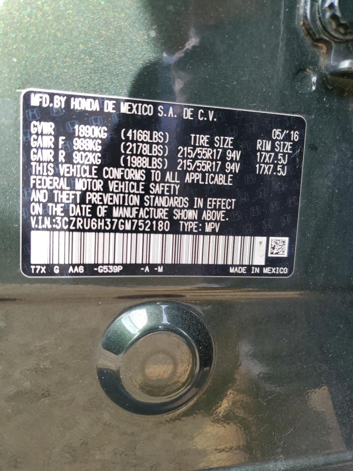 2016 HONDA HR-V - 3CZRU6H37GM752180, цвет - Зеленый, 1.8, Бензин, Полный привод из США