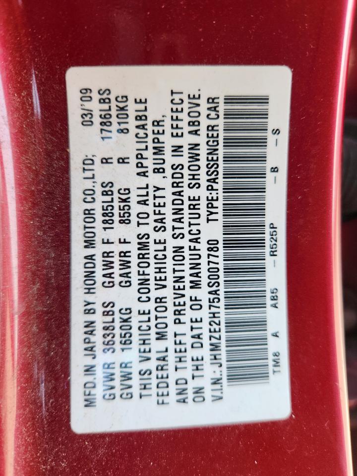 2010 HONDA INSIGHT - JHMZE2H75AS007780, цвет - Красный, 1.3, Гибрид, из США